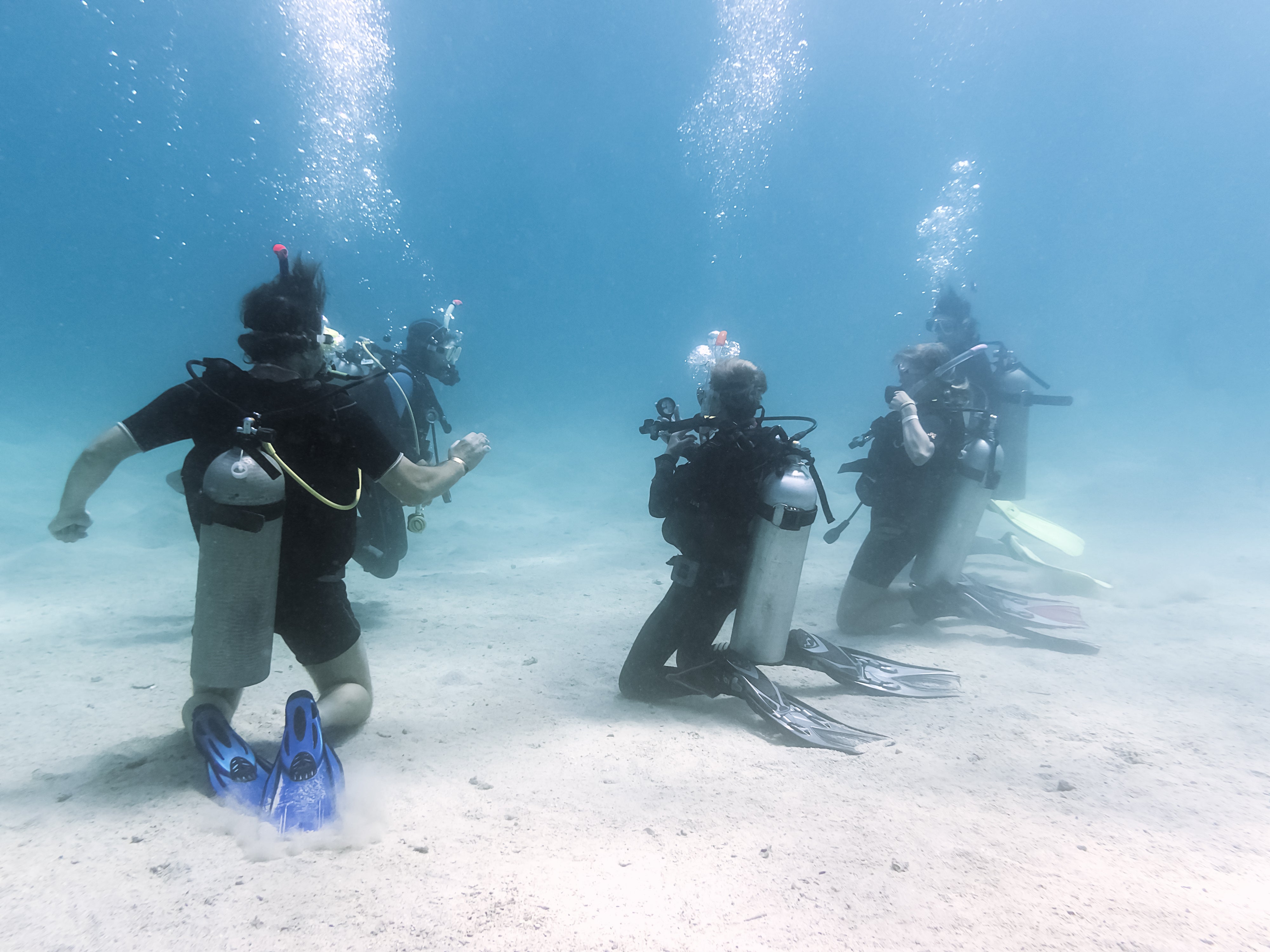Most students complete their certification in 3–4 days, depending on their schedule. Online learning can be done at your own pace, followed by pool sessions and ocean dives. We’re flexible and work with your timeline.